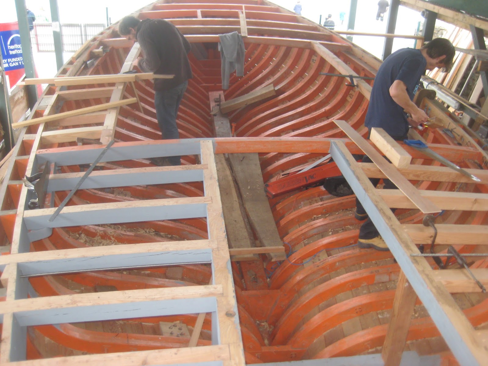 So anyway, both Daves are now making the half beams along the deck sides.